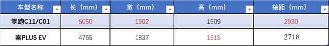 从定位上来看,零跑C01定位在了中大型车,而秦PLUS EV定位于紧凑车,单从车型上来看,零跑C01势必会更大。