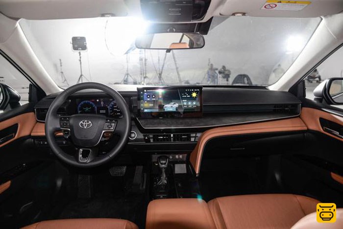 智能化座舱方面,国产版第九代凯美瑞最大的变化来自于车机系统搭载了高通8155芯片,双12.3英寸仪表屏+中控屏,基于安卓底层,由华为涉足开发的全新车机系统智能而强大,支持华为HiCar、百度CarLife和苹果CarPlay,车机算力较现款提升4倍,系统各功能响应速度提升1-4秒以上,操作流畅度达主流水平。车机系统新增APP下载功能,海量应用多样玩法满足各种需求。同时,车机运行内存提升至12GB,储存内存提升至128GB。